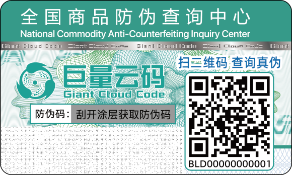 具有随机的、巨量云码点状码,并将每一个产品的这种不可复制的特征进行编码,通过巨量云码小程序进行识别