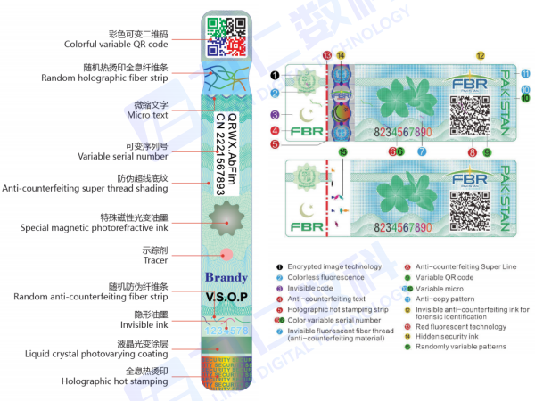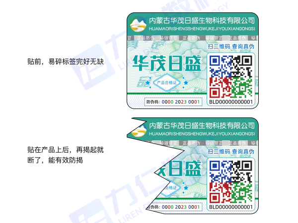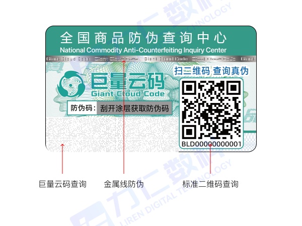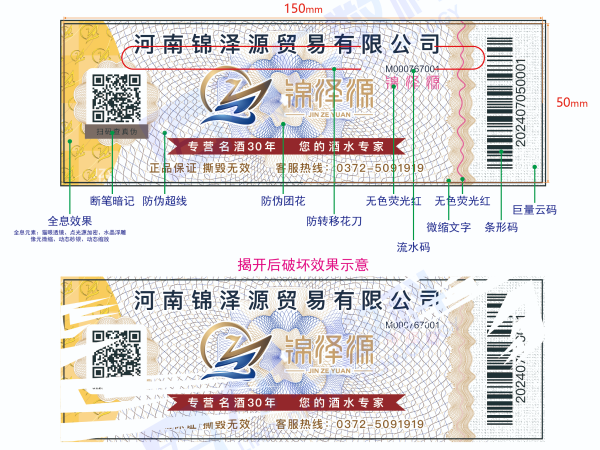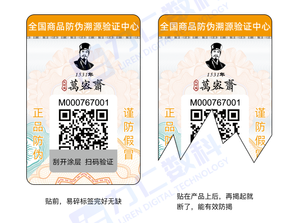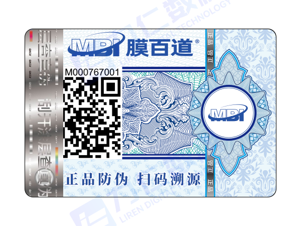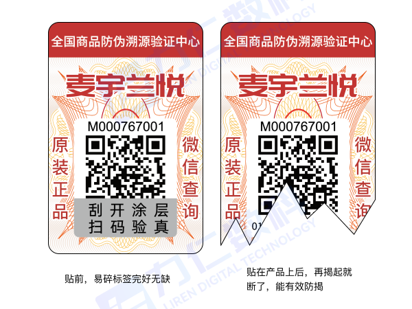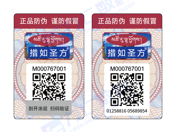 该防伪标签具有二维码营销、防窜货、溯源的功能,防伪溯源、商品防伪、食品溯源、拍码购物、产品包装、产品防窜货。