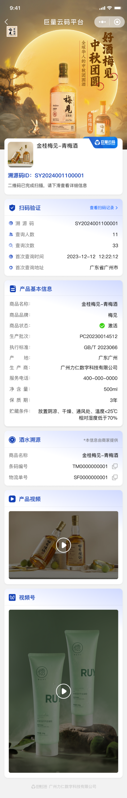 扫描二维码、输入验证码,提交即可查询到结果,通过巨量云码小程序对巨量云码进行扫码,即可识别